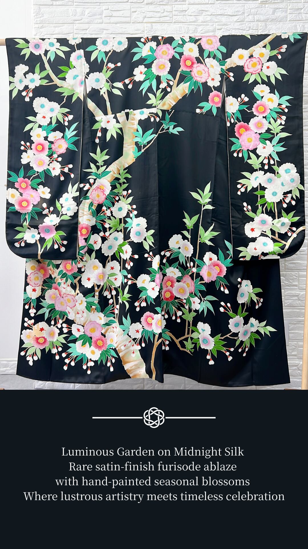 FURISODE: LUMINOUS GARDEN ON RARE SATIN SILK