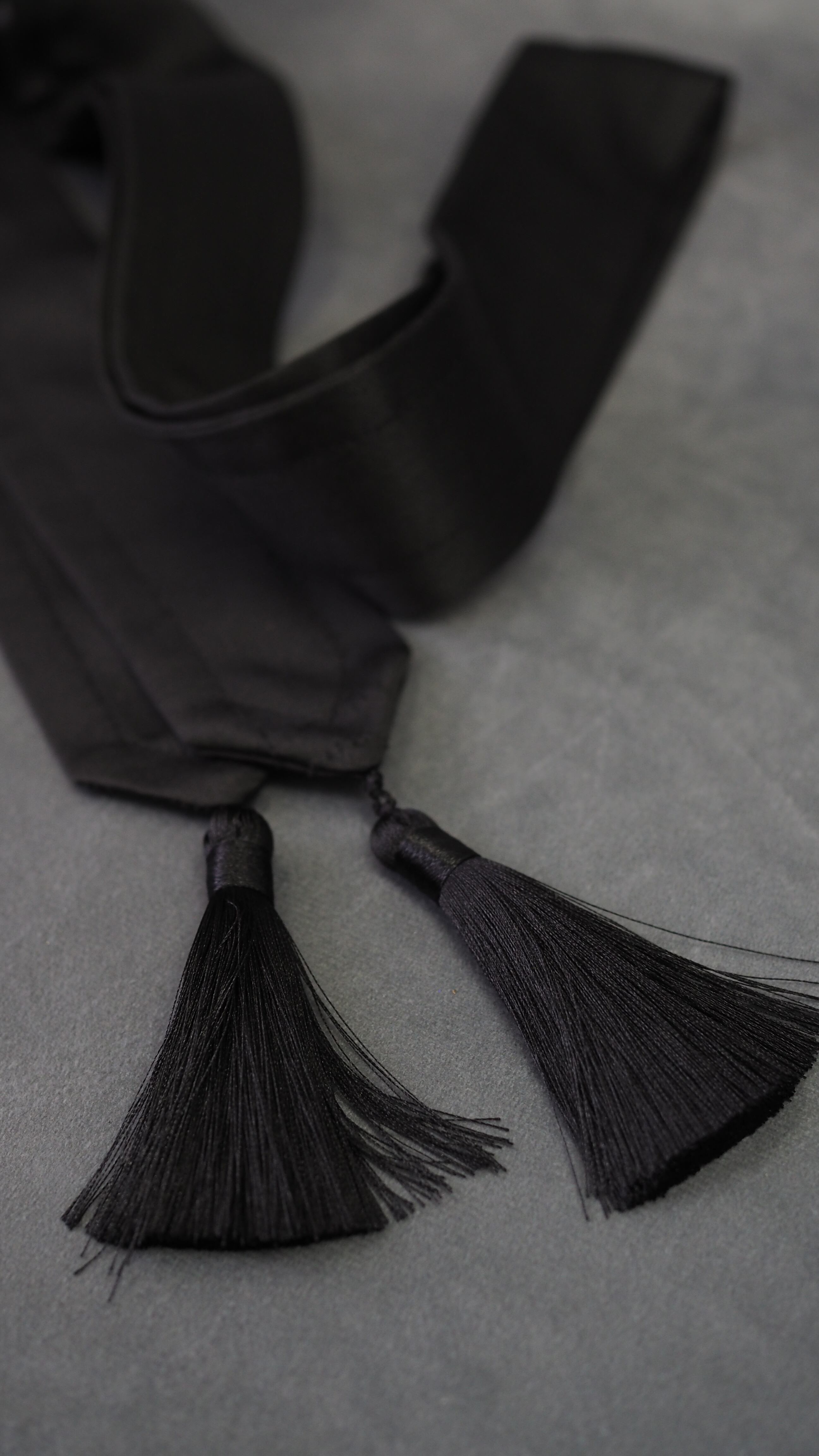 劇的でありながら洗練された、伝統と現代性が融合した一着です。