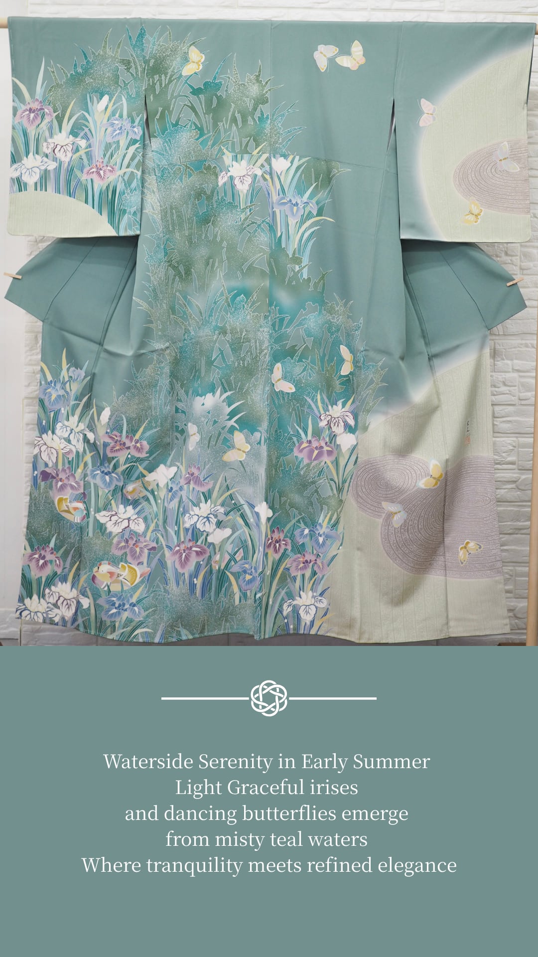 訪問着:朝霧に浮かぶ菖蒲の庭