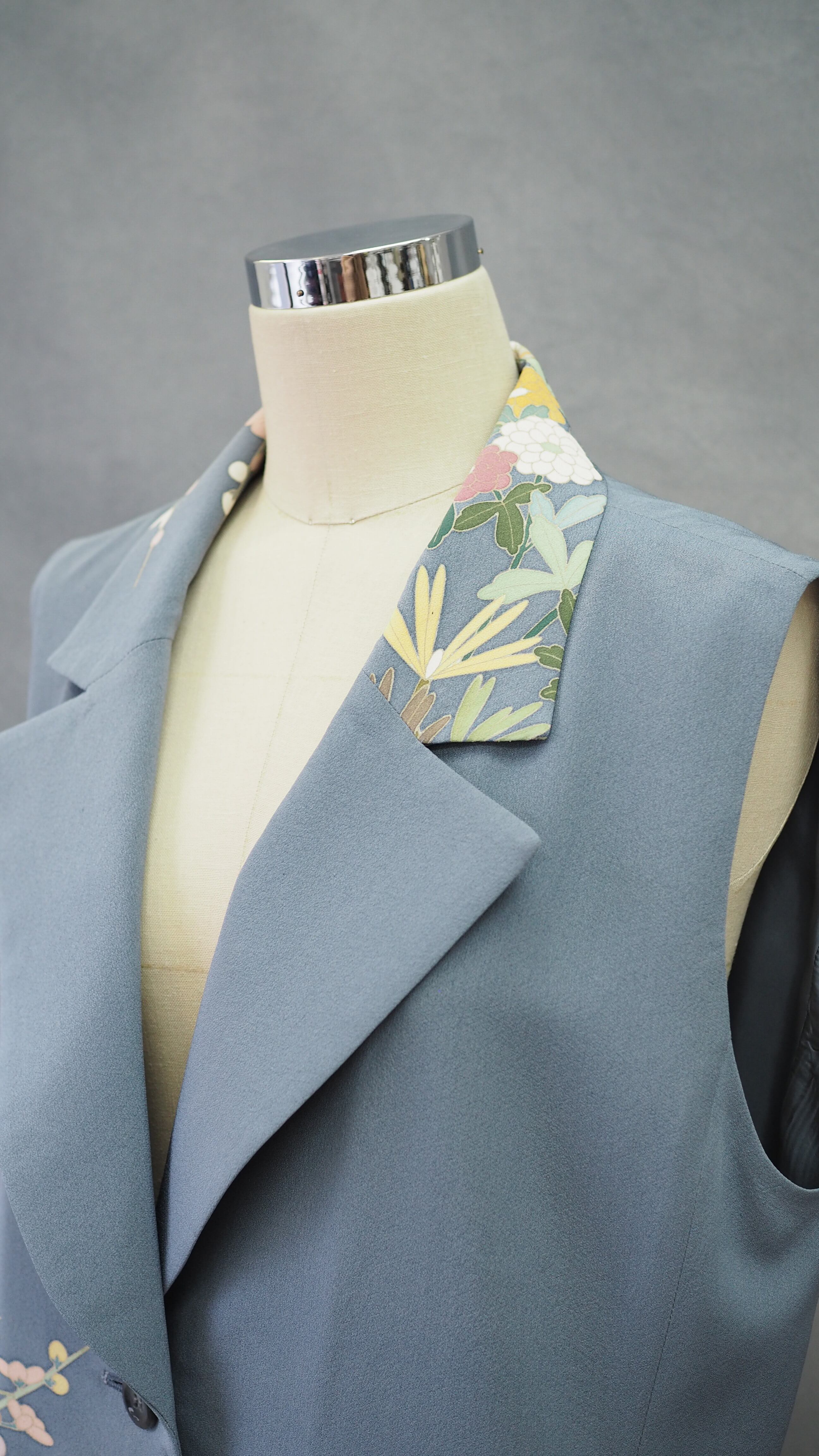 The kimono fabric becomes the statement, while the design remains timelessly wearable.